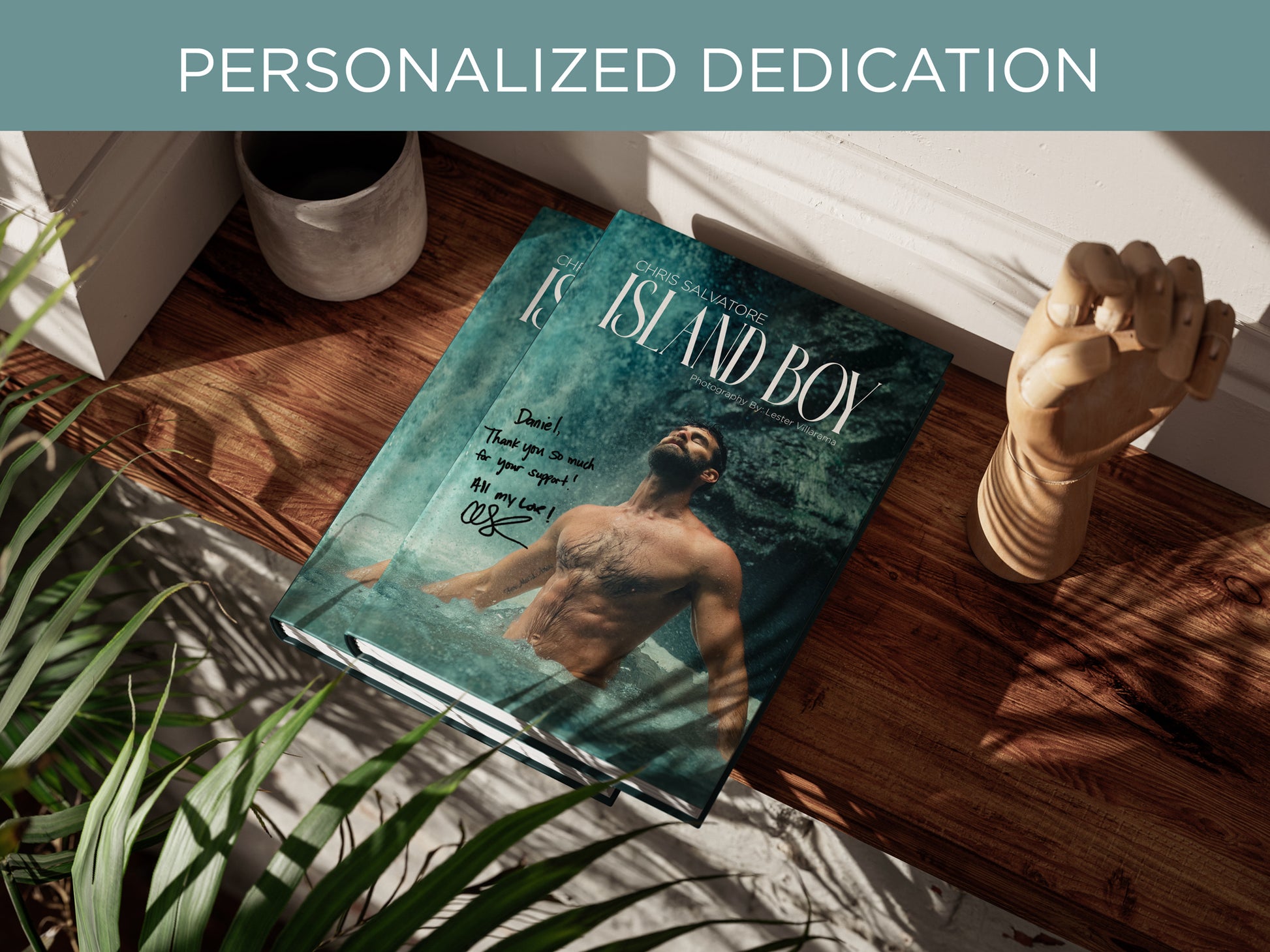 "ISLAND BOY" PERSONALIZED SIGNED COPY. 8.5 x 11 Hardcover Print Coffee Table Book with 170 Premium Pages. ISLAND BOY featuring Chris Salvatore Photography by Lester Villarama shot in the beautiful islands of Kauai, Hawaii. Includes over 200 EXCLUSIVE BOOK images you'll never find online! Printed in PREMIUM 100 lb GLOSS Paper.